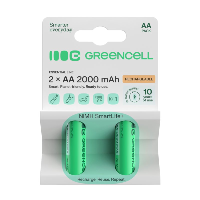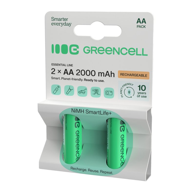 Elk jaar gebruiken we wereldwijd meer dan 40 miljard wegwerpbatterijen, die vaak direct in de prullenbak, en dus in het milieu, terechtkomen. Green Cell batterijen kunnen tot 3 jaar intensief worden gebruikt, wat gelijk staat aan het opgebruiken van tientallen niet-oplaadbare AA-batterijen! Met Green Cell batterijen beperk je de hoeveelheid afval en help je het milieu te beschermen!