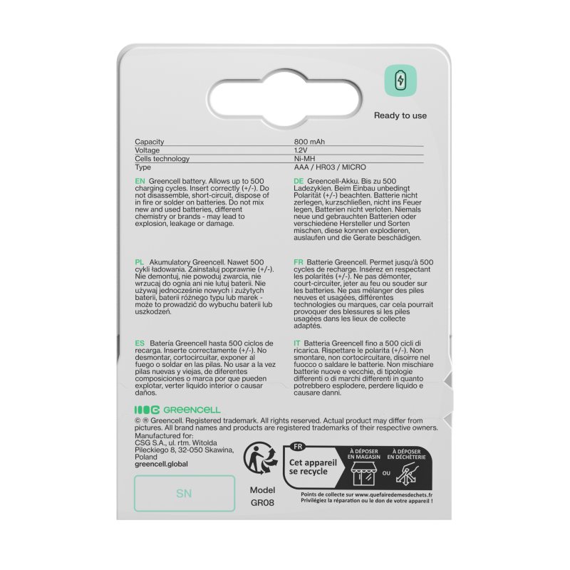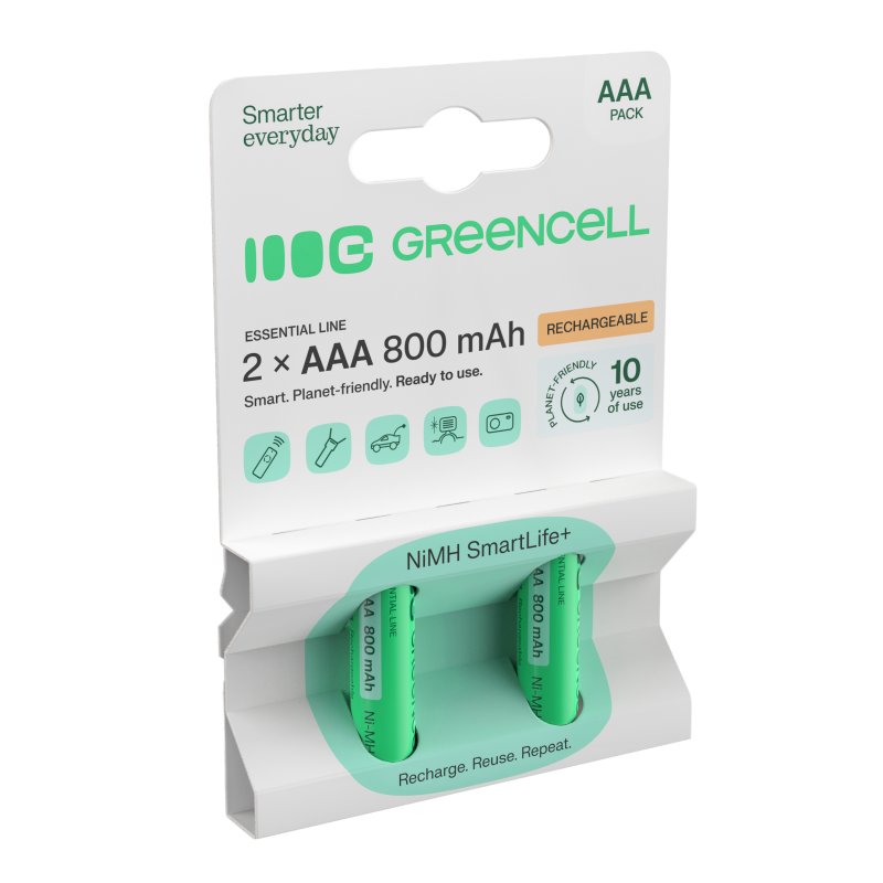 Elk jaar gebruiken we wereldwijd meer dan 40 miljard wegwerpbatterijen, die vaak direct in de prullenbak, en dus in het milieu, terechtkomen. Green Cell batterijen kunnen tot 3 jaar intensief worden gebruikt, wat gelijk staat aan het opgebruiken van tientallen niet-oplaadbare AAA-batterijen! Met Green Cell batterijen beperk je de hoeveelheid afval en help je het milieu te beschermen!