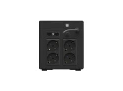 Geavanceerd type UPS. Het is uitgerust met een automatische spanningsstabilisator, die zowel beschermt tegen stroomverlies als tegen veranderingen in optimale spanningsparameters. Het garandeert volledige veiligheid voor elk apparaat dat erop is aangesloten. De overschakeltijd van netvoeding naar noodstroom bedraagt minder dan 10 milliseconden.