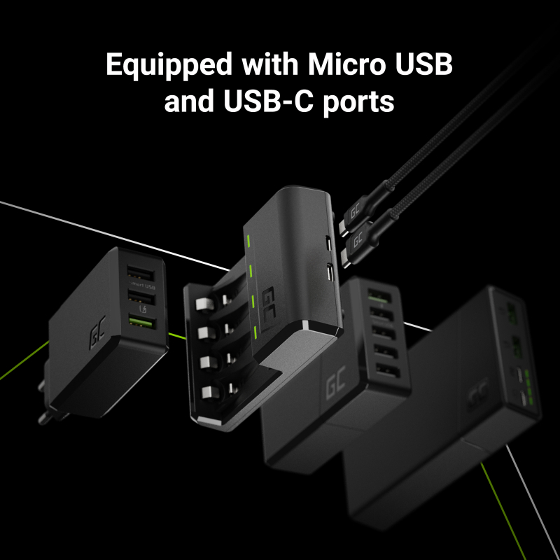 • De oplader zorgt voor compatibiliteit met alle AA- en AAA-batterijen